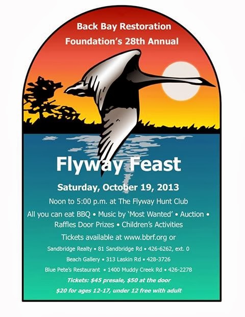 Get ready for another community event! the 28th Annual Back Bay Restoration Foundation Flyway Feast is October 19 from 12pm to 5pm. Enjoy all you can eat barbecue, music, and raffle prizes. You can purchase tickets at our office. Visit www.bbrf.org for more details.